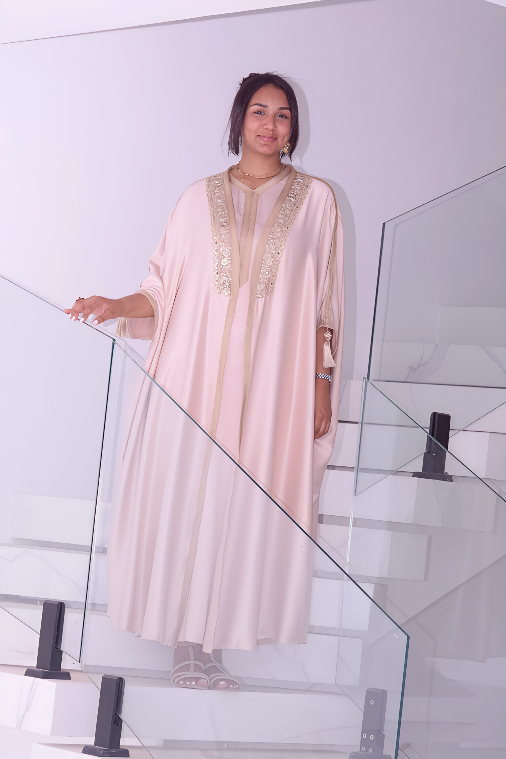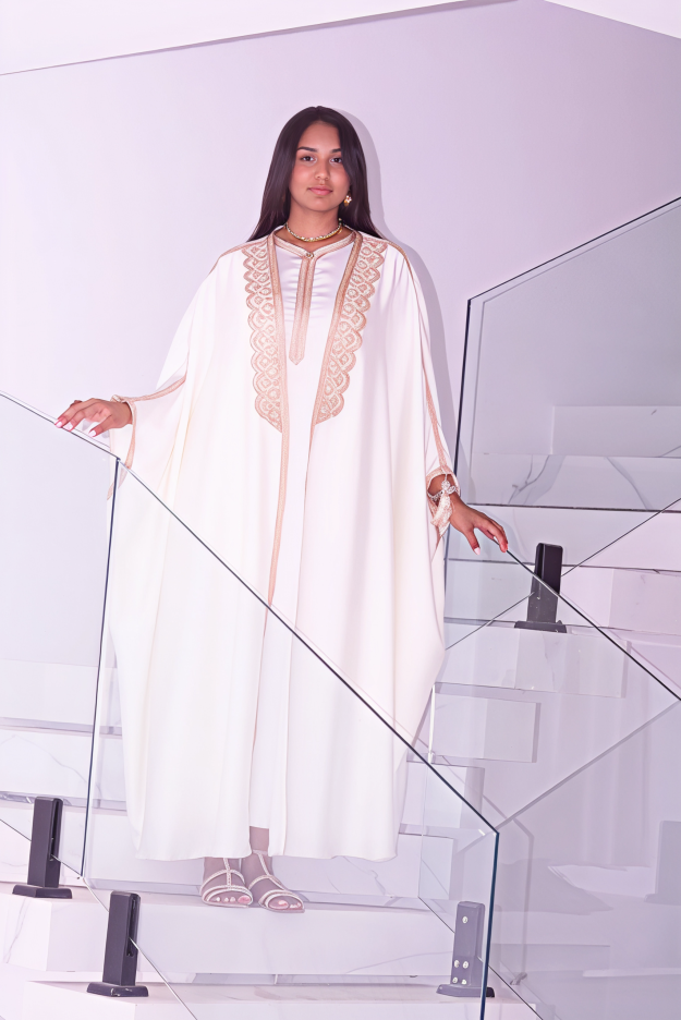 Disponible en blanc cassé ou en rose délicat.